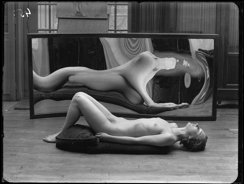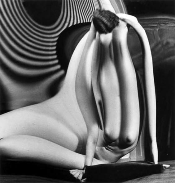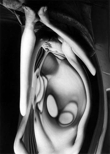 Si bien la curiosidad por este tipo de imágenes empezó en Hungría a raíz de su famosa fotografía del hombre zambulléndose en la piscina (1917), no es hasta 1939 cuando su trabajo experimental con las distorsiones fractales le valen el reconocimiento como maestro de la luz. Mediante un juego óptico y utilizando espejos deformantes Kertész consiguió cerca de 200 imágenes únicas, en las que el cuerpo de la mujer se transforma en un bucle amorfo e imposible, un laberinto de masas escultóricas que redefinen la idea de la mujer como objeto, pero sobretodo una imaginería al servicio de la forma, con la luz como única herramienta para esculpir el cuerpo humano y el espacio que lo circunda.