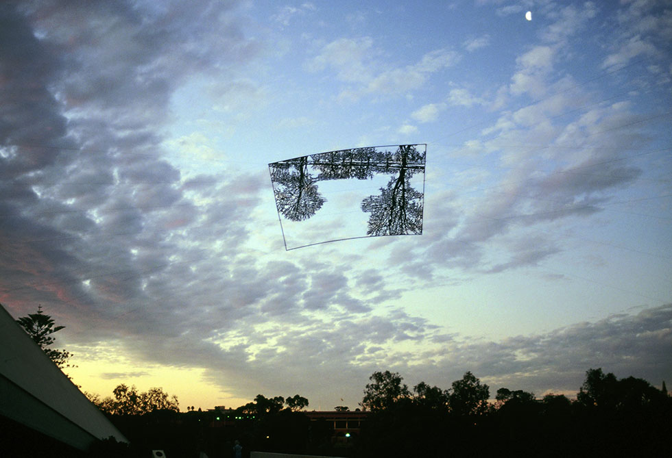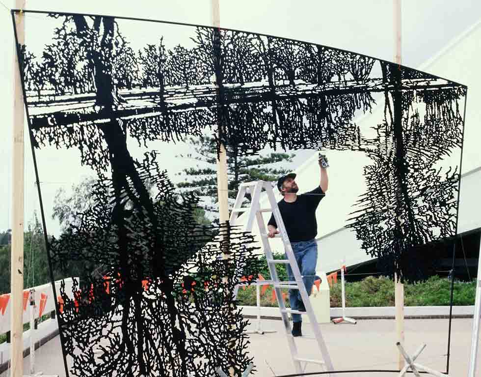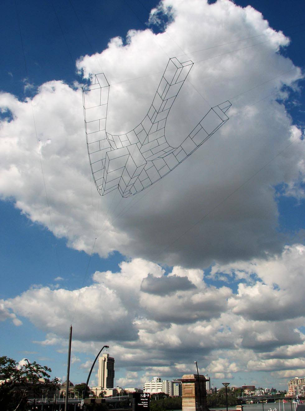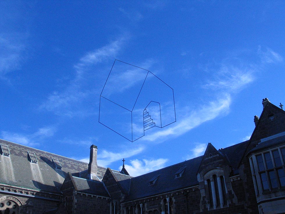 Neil Dawson (Nueva Zelanda, 1948) es un artista inusual, usa la escultura para dibujar en el espacio valiéndose del volumen para enseñarnos el vacío, empleando las tres dimensiones para figurar una bidimensionalidad óptica. Heredero de Hescher (Países Bajos, 1898) en cuanto a las propiedades ilusorias de la perspectiva Dawson interviene el espacio con el mismo sentido lúdico que el artista Holandés, usando el cielo o el paisaje como el telón de fondo de una viñeta donde la escultura transforma, momentáneamente, la realidad en un «cartoon», en un juego imposible fondo-forma. La utilización del moaré producido por el entrelazado de las mallas de acero que utiliza para representar los niveles de grises que tendría una ilustración plana, el recorte casi origámico de sus piezas, el patrón modular (nuevamente Hescheriano) de sus mini esculturas, confieren a su obra un encantamiento propio del universo literario de Lewis Carroll, un universo que necesita la naturaleza como modelo para, enfrentándola al espejo del arte, mostrarnos el rostro imposible que oculta.