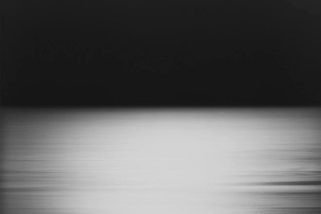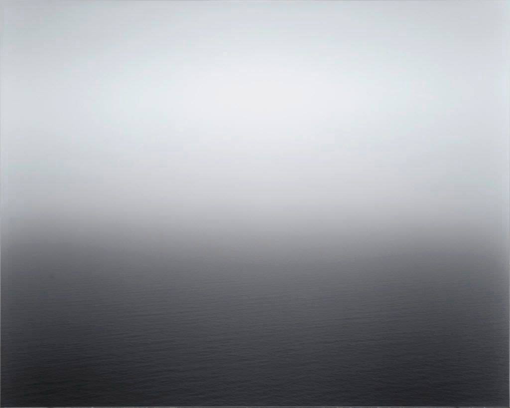 El tercer, e igualmente asombroso trabajo, es “Seascapes” (1980). En él, Sugimoto hace alarde del minimalismo que caracteriza gran parte de su obra para mostrarnos la capacidad que tiene la imagen fotográfica de sugestionar y engañar nuestros sentidos. Colocando la cámara un poco por encima del nivel de visión que tendría una persona desde la orilla del mar, y jugando con exposiciones ligeramente lentas, el fotógrafo japonés logra producir la sensación de vértigo frente a algo estático. Resulta difícil entender este concepto si no se está de pie frente a una de esas fotografías de gran formato. Cuando se tiene esa oportunidad uno experimenta la sensación de caer dentro de la foto, de que nuestro centro de gravedad se inclina hacia ese horizonte marino perfectamente equilibrado. En “Seascapes” Sugimoto extrapola lo efímero y lo atemporal fuera del marco fotográfico para inmiscuir al espectador en la ilusión. Sabemos que ese mar está inmóvil, o mejor dicho nuestra razón lo sabe, más nuestros sentidos prefieren dejarse seducir por el engaño y nos sobreviene la placidez de lo infinito. La luz brumosa de esos mares nos embriaga y nos desplaza de nuestro centro al centro de gravedad de la imagen. El espacio entre el mar y el entorno que nos circunda se vuelve uno y entonces participamos del tiempo de la fotografía; ese tiempo no se mueve, somos nosotros quienes lo hacemos al contemplarlo.