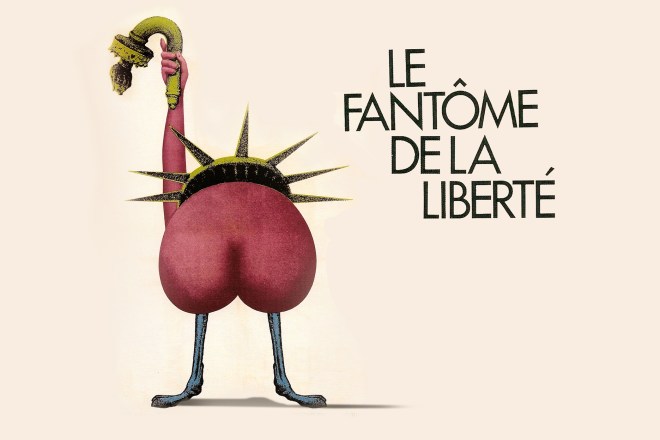Aunque no lo parezca Buñuel (España 1900) está haciendo política aún ahí, es más, está despolitizando algunos de los signos de su tiempo. Y es que «El Fantasma de la Libertad» (1974) es eso: una declaración demoledora de lo políticamente incorrecto. El cineasta aragonés se encuentra en una edad madura para cuando rueda «El Fantasma de la Libertad»; ya ha hecho «La edad de oro», “Las Urdes», “Los olvidados”, «Viridiana», «El ángel exterminador» y «Belle de Jour», ahora se dedica a recopilar —no sus fantasmas y obsesiones surrealistas como se insiste en Wikipedia y muchos libros biográficos—, sino su más afilado y contestatario juicio político sobre una sociedad y un sistema podrido desde sus bases; de la familia a la religión, del sexo al asesinato masivo, de los horrores de la guerra al absurdo de la burguesía, de la política inhumana al cuidadano primitivo, animal. Buñuel es inclemente en esta película, sabe que —desafortunadamente— su tiempo (o más lamentablemente, los cronistas de su tiempo) mira su cine como surrealista desde que hizo con Salvador Dalí «Un perro andaluz» y, a fuerza de luchar para zafar del apodo, ha aprendido a usarlo para lanzar cañonazos escudado en él. Buñuel no hace cine surrealista, eso se lo deja a Man Ray, Buñuel ha hecho Política desde la primera hasta la última de sus obras, y lo ha hecho de una manera tan avezada e ingeniosa que, como es normal en todo tiempo histórico, ha burlado la censura de un sistema miope que es incapaz de ver más allá de las narices de su presente. Para muestra este botón.