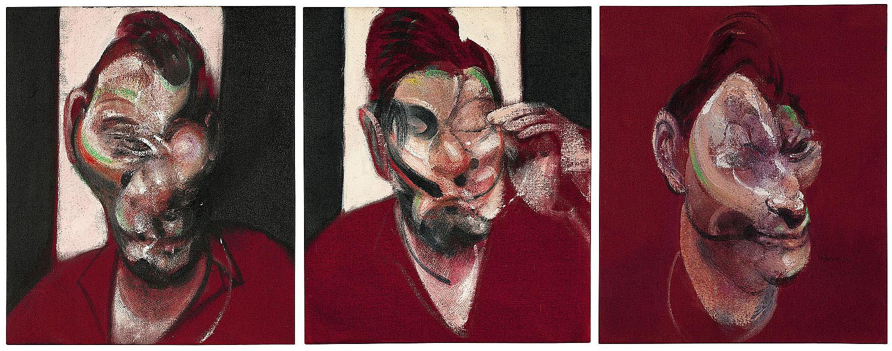 Del rostro al cuerpo y del cuerpo al mismo espacio que lo circunda; el tormento convulso de la carne, la unidad indisoluble vida-muerte y la experimentación con su propia psiquis a través de las más extravagantes vivencias autodestructivas (en las que caía movido por su mórbida concepción de lo que es sentirse vivo, así como por una inexplicable sucesión de tragedias amorosas que marcaron su vida y grandes periodos de su obra) fueron para Bacon el principio fundacional de su arte. Teatralidad, Animalidad, Crucifixión, Aislamiento, Cópula, Deterioro, Soledad y Nostalgia, pero por sobretodo Fisicidad son los adjetivos que intentan definir la imaginería pictórica de la obra de este monstruo de la pintura contemporánea.