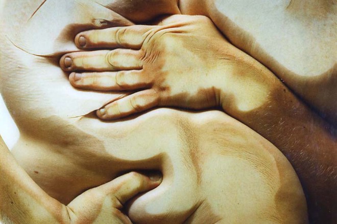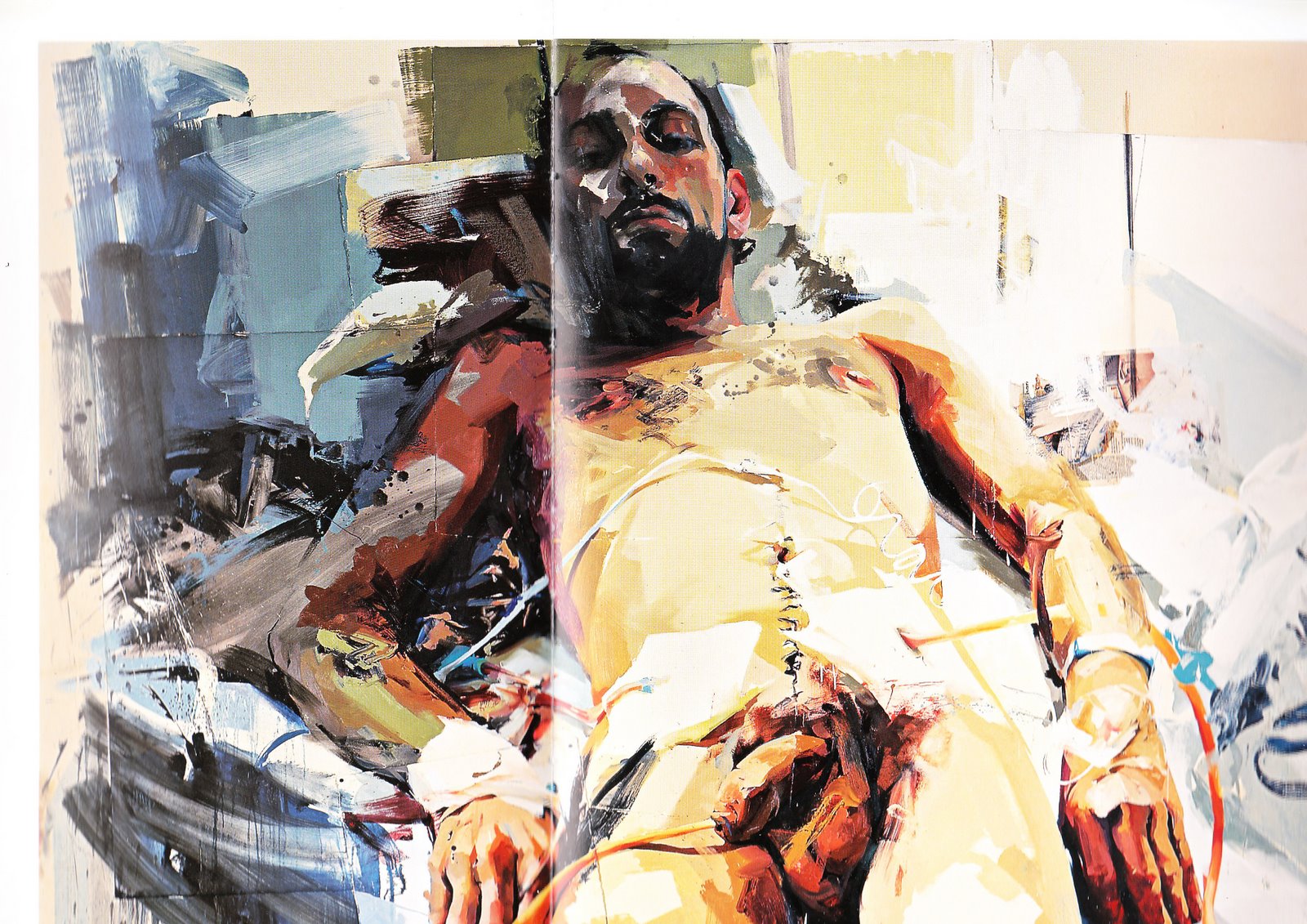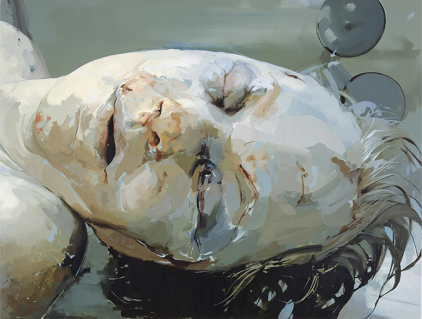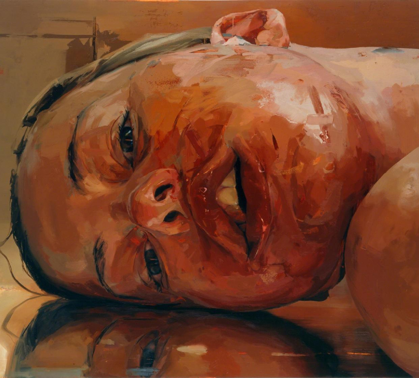 Jenny Saville pinta personas accidentadas o en procesos postoperatorios, gente que se recupera de una cirugía, del cambio de sexo o de una reconstrucción estética, gente golpeada y embrutecida, gente lacerada, mutilada y transformada, gente anónima y universal. Muchas veces Saville es su propio motivo pictórico; se autorretrata para cuestionar su género, su cuerpo y su sexo, pero también su tiempo y la visión contemporánea del ser humano, una visión infrarroja, ultravioleta, propia de un tiempo ciego cuyo espectro luminoso se limita a juzgar como real tan solo aquello que la piel refracta, desconociendo la insondable profundidad que encierra el ser y su circunstancia.